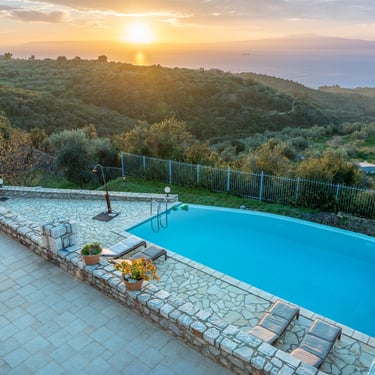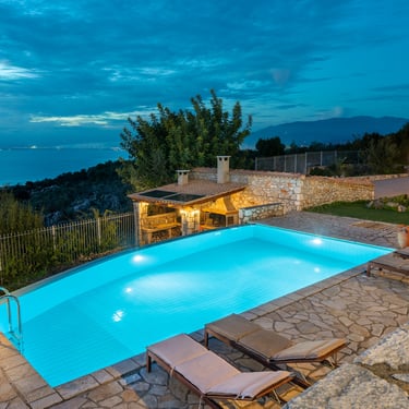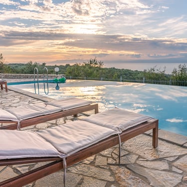 An infinity pool is a luxury swimming pool designed with a vanishing edge, creating the illusion that the water extends into the horizon, sky, or sea